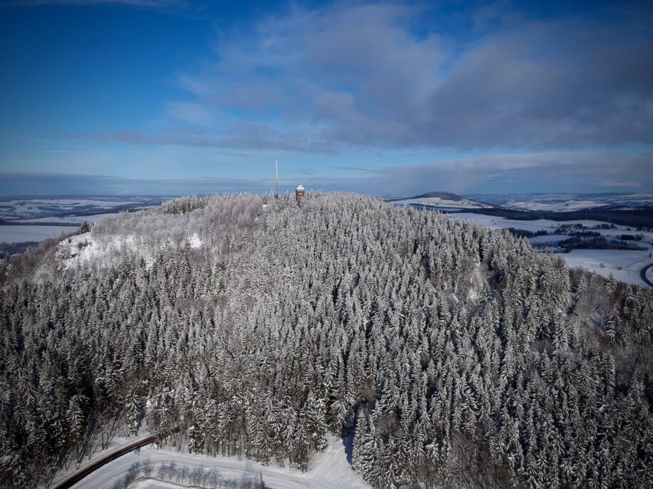 Der erste Schnee ist gefallen und wir betrachten wieder unseren Berg Bärenstein und den Ort von oben. Wir haben einige Bildausschnitte wie bei unseren Herbstfotos gewählt, sodass Sie vergleichen können wie sich die Natur in nur einem Monat verändert hat.